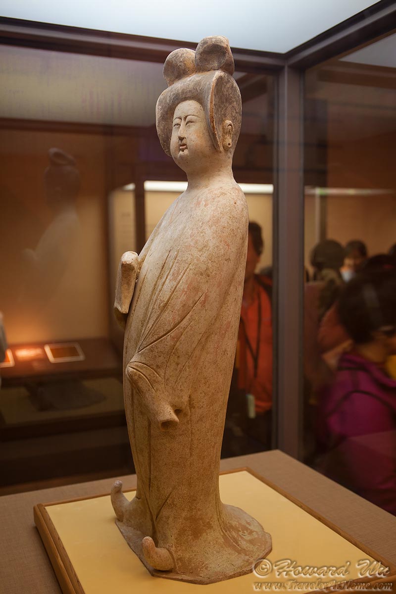 Another important exhibit is a Clay Beauty from the Tang Dynasty (唐灰陶加彩仕女俑). The colorful glaze has worn off after nearly 1,400 years, but the figure is still vivid (though their notion of beauty apparently differed from ours).