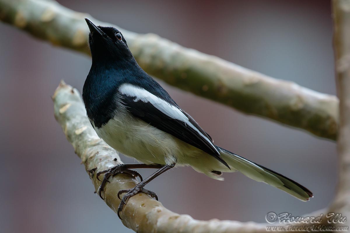 The most active birds at the resort were the Oriental Magpie-robins (鹊鸲). These are very bold and active birds, not afraid of people at all. The males are clad in striking black-and-white attire, very handsome, I think, and the females have more subtle plumage with mingled black, white and gray which is also very pretty. They are also very cheerful birds, anytime seeing them hopping about on the lawn or flitting around in the trees is enough to put a smile on my face. For this reason, they have a nickname in Chinese -- Four Happiness (四喜); their other nickname is rather unceremonious: Flakes of Pigs' Feces (猪屎渣), for they also like to forage in pigs' manure piles.