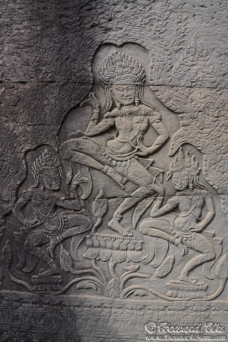 The bas-reliefs or carvings at the Bayon Temple are also very impressive.