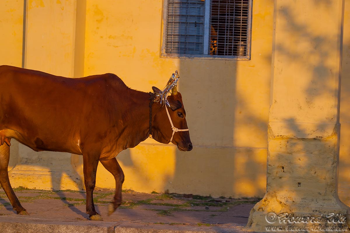 Other animals we saw include this sacred cow, leisurely walking into the golden light of the fading sun.