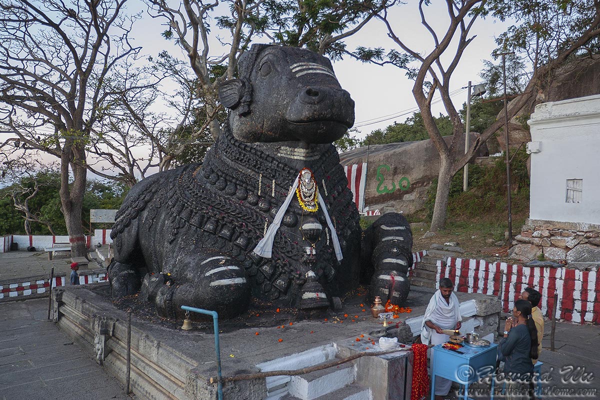 We made our last stop at the Nandi of Mysore statue, mount of Lord Shiva and worshipped as a deity itself. It was carved out of a giant boulder.
