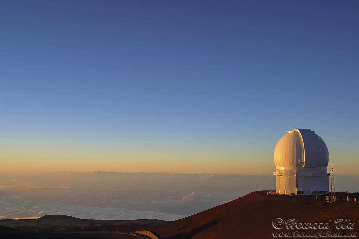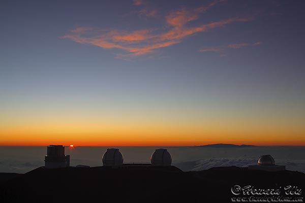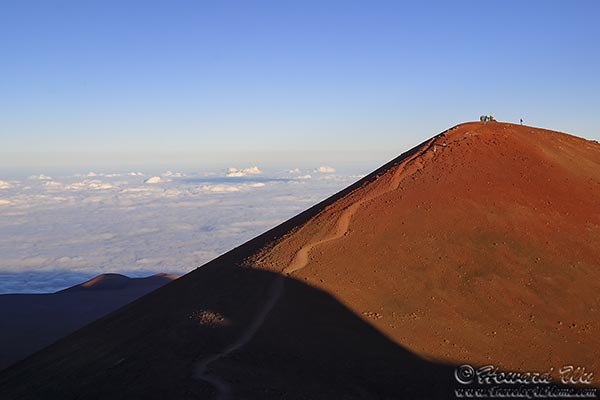But the highlight of our trip was undoubtedly the drive to Mauna Kea. The summit of Mauna Kea is 13,803 ft (4,207 m) above sea level. While we did not take the final hike to reach the summit (we waited for the sunset by the observatories, we did reach the observatories at similar height. Thus, in about 2 hours, we drove from sea level to nearly 14,000 feet -- near the height of the Tibetan Plateau. It still gives me chills to think that one can reach such a height in so short a time. It is one of the most exhilarating drives I have ever taken, though, curiously, it is not very dangerous at all. The drive to the visitor center at 9,300 feet is just a paved road, surely it goes up and up forever, but it is in good condition. The road from the visitor center to the summit is unpaved, but gravelly and wide, nothing to worry about at all.