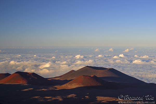 The landscape at the summit is otherworldly -- almost moonscape. We were above the ocean of clouds, and the sunset was spectacular and breathtaking. It was as much a spiritual experience as an aesthetic one.