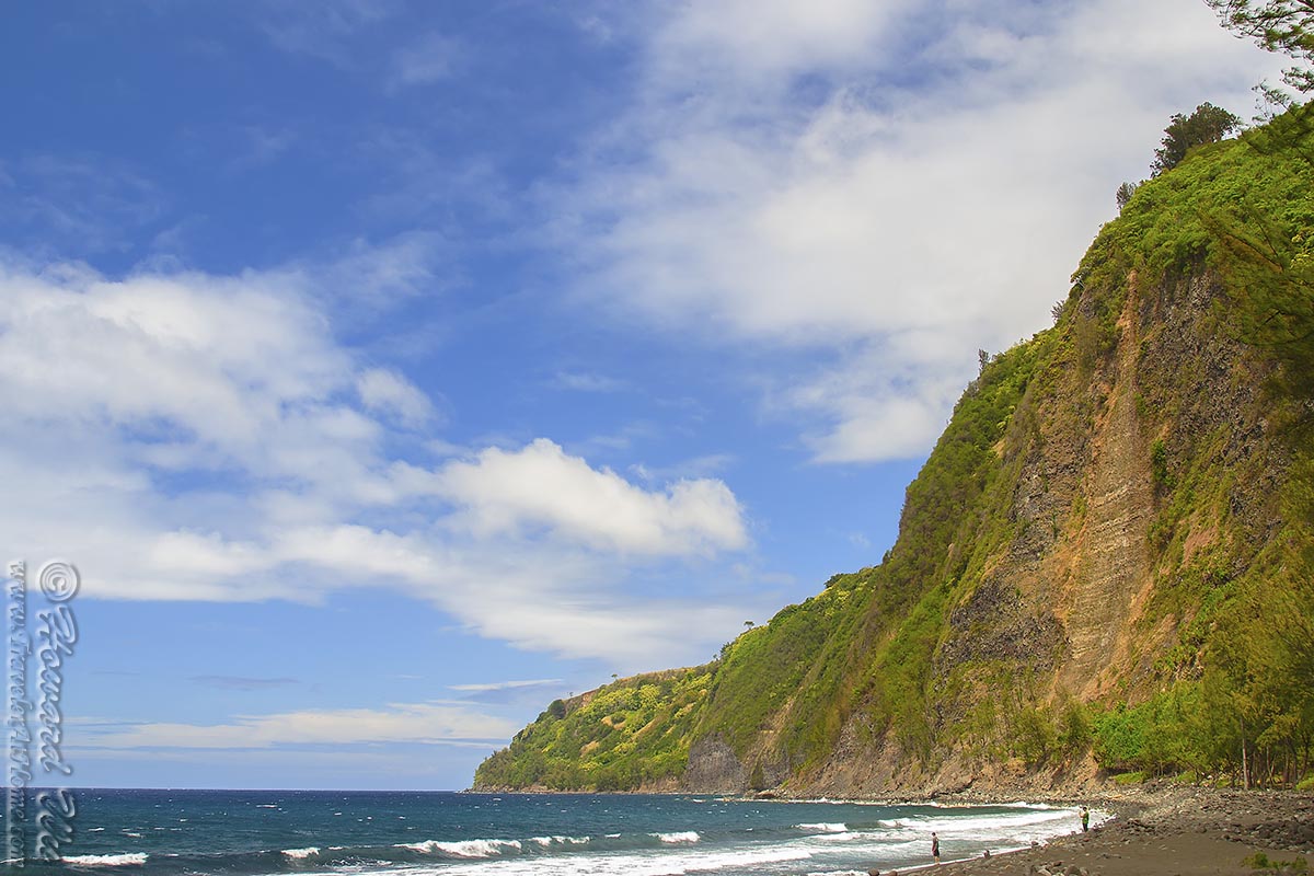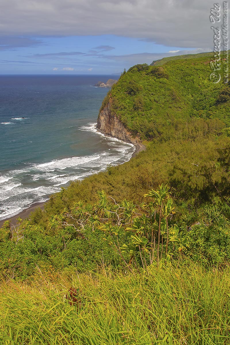A leisurely drive took us to Pololu Point overlooking the valley with the same name. The day was cloudy, but we did manage to see glimpses of the sun, and I managed to get a crack of blue sky into my pictures.