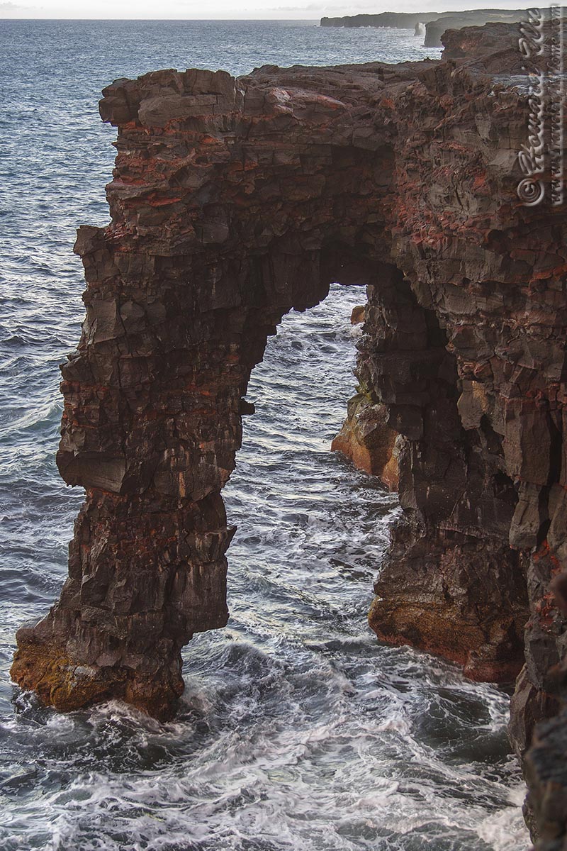 We stayed at a lodge just outside the Hawai'i Volcanoes National Park. At dust we took the Chain of Craters Scenic Drive to the coast and saw the Holei Sea Arch. We tried to walk toward the active volcanoes, but we did not quite succeed.