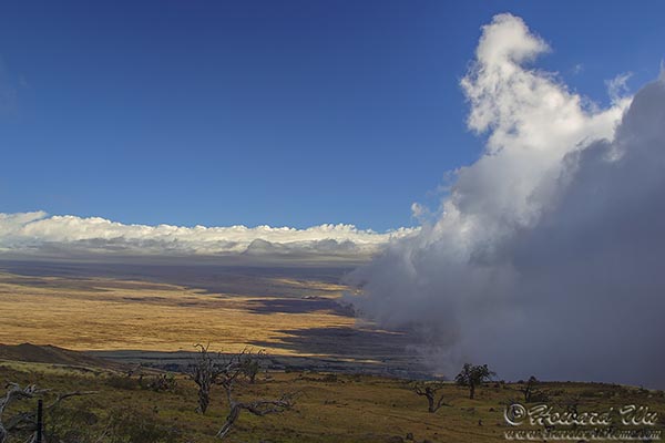 The weather was capricious on the island while we were there. While driving over the Kohala Mountains, we saw masssive tropical clouds rolling over the tilted mountain slope.