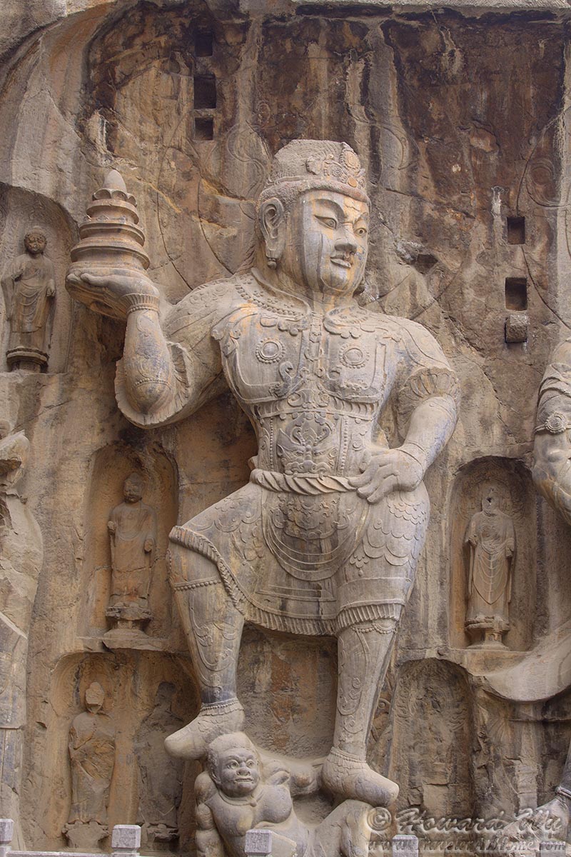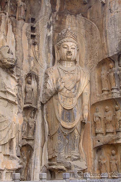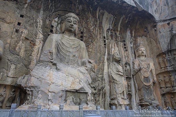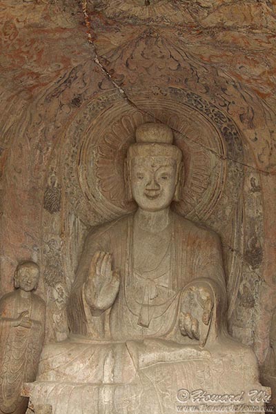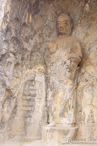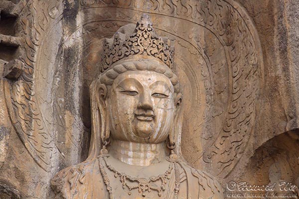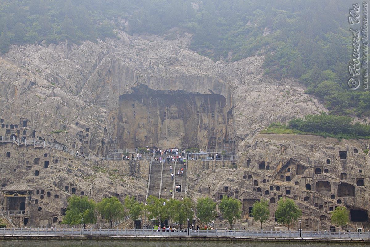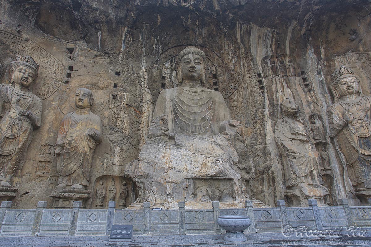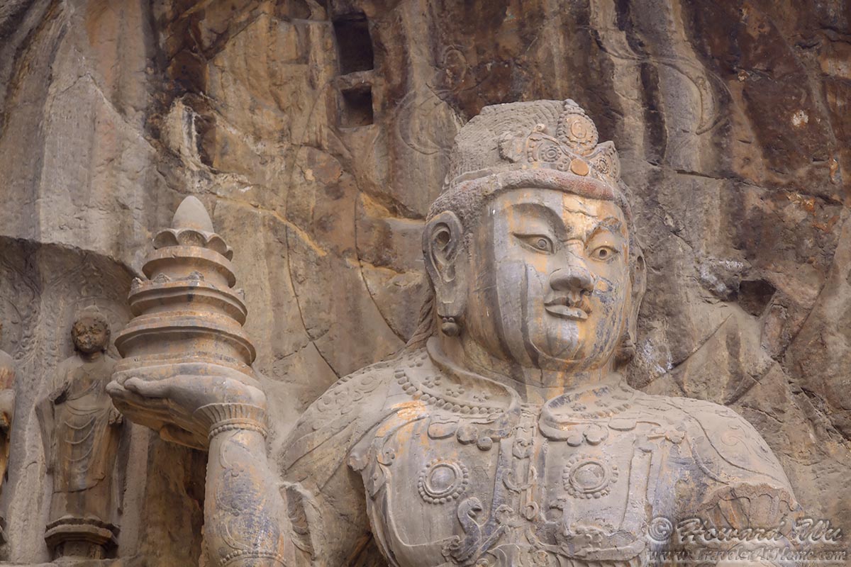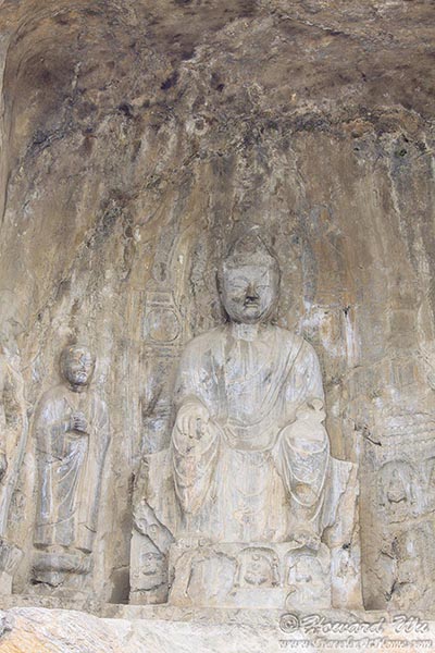 But for sure the place we wanted to see was Longmen Grottoes. There are as many as 100,000 statues in the 1,400 caves there, the largest of which is the statue of Lochana Buddha (or Lushena Buddha, or Buddhalocana, or Vairocana in various Buddhist nomenclature; Chinese: 卢舍那佛), which is 17 meter (57 feet) high and it is an amazing work of art, despite its being defaced over the years.