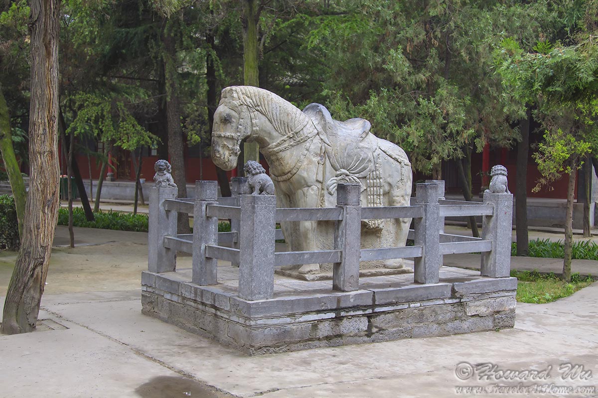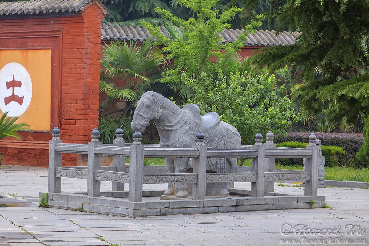 But our first stop after reaching Longyang was the White Horse Temple (白马寺), which is the first Buddhist temple in China (built in 67AD, more than 2,000 years ago), and where Buddhism reached China and took roots. The name of the temple conmemorates the white horses that carried Buddhist saints and scriptures to China, and there are several of white horse statues there.