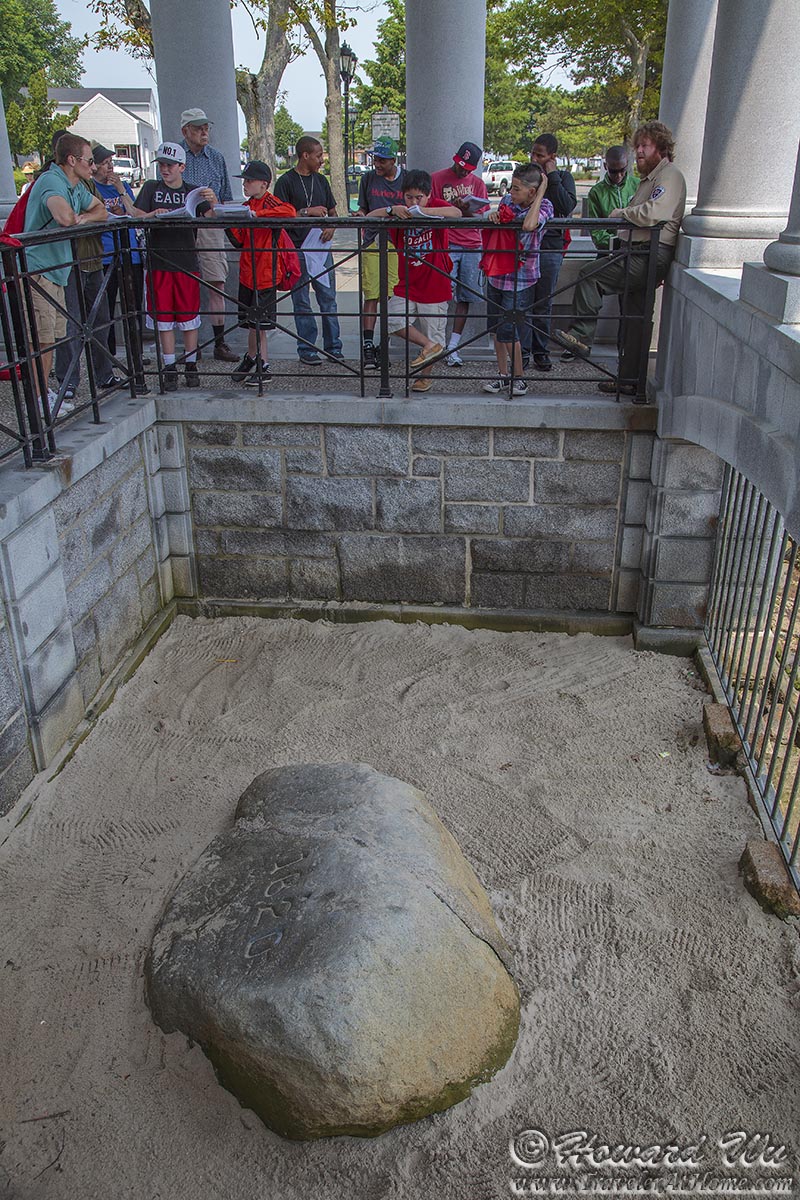 And the "landing rock" is enshrined (but honestly, its authenticity is dubious), and a group of students were getting their patriotic lessons.