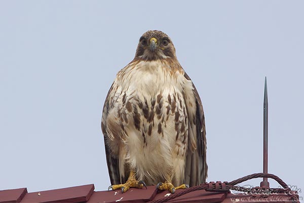 We made a stop on Coast Guard Beach, but the fog was getting heavier. Just then I noticed a very imposing figure on top of the coast guard station — this was a Red-tailed Hawk.