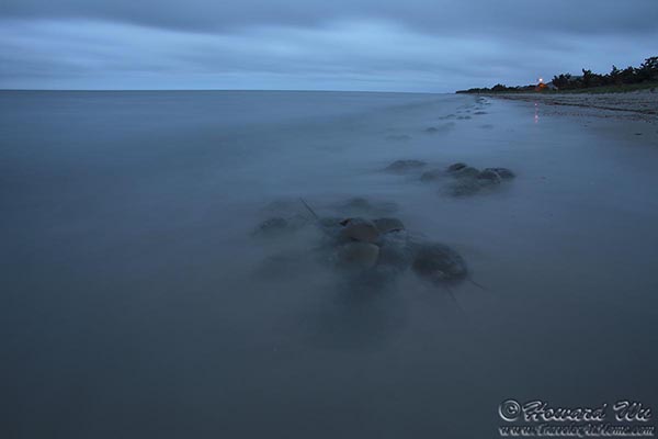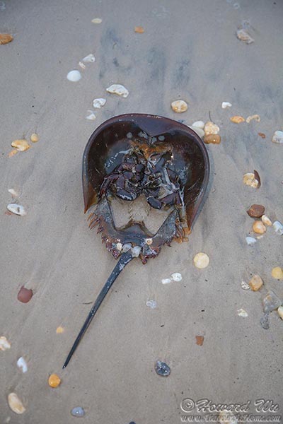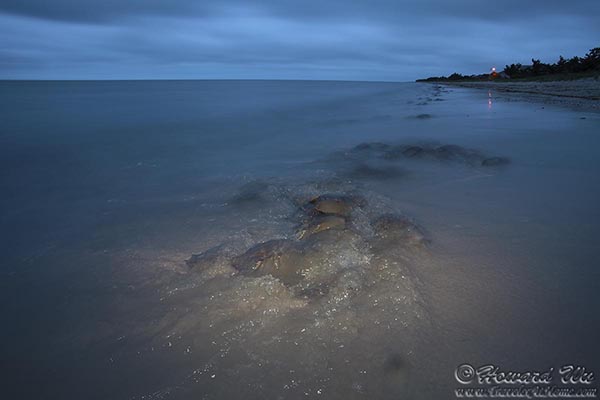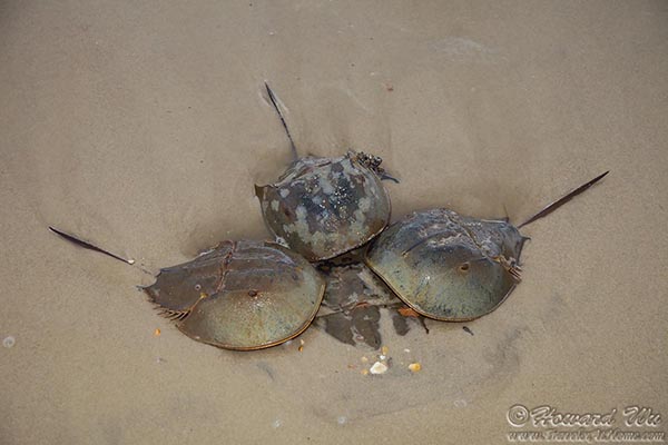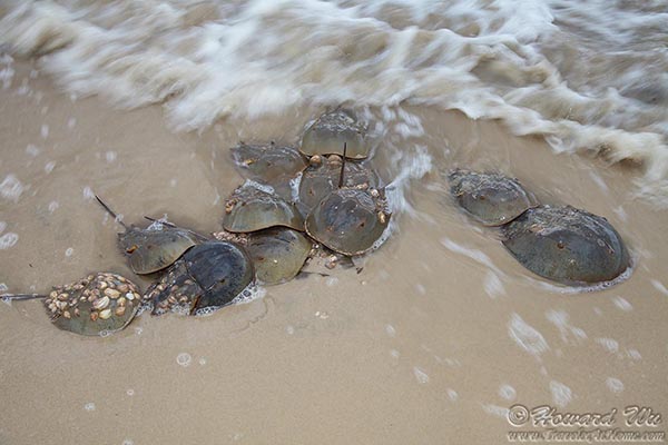 Every year in May or June, horseshoe crabs come to shallow coastal waters to mate and lay their eggs. On the Atlantic coast, the Delaware Bay has the highest concentration of these ancient creatures. They are most numerous when during the high tides of the new and full moons within this window of time. On May 23, 2013 we witnessed this natural spectacle at the Delaware Bay. (Click on each image to see the high-resolution version)