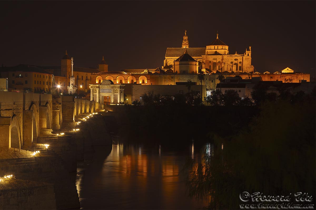 There is a Roman bridge in the back of old town across the Guadalquivir River. At night the city and the bridge glow in the dark.