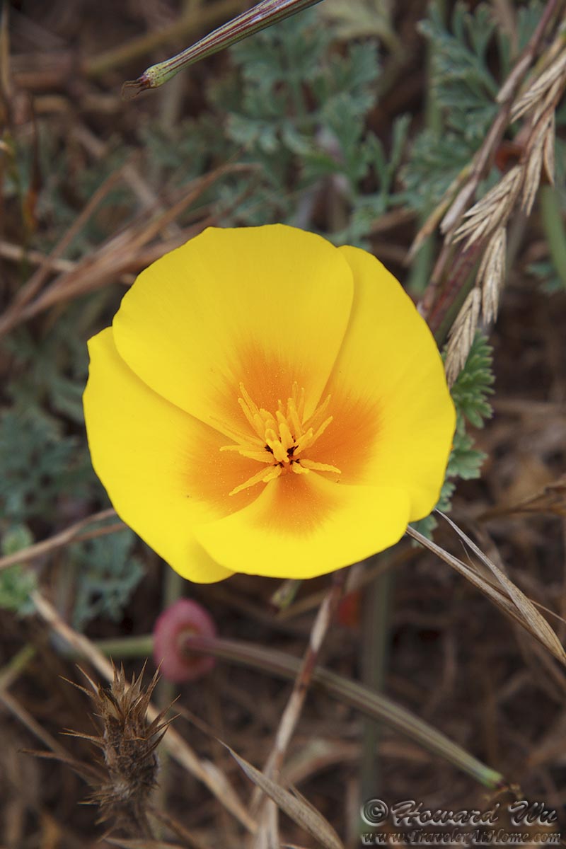 Near the beach, wildflowers are in full bloom on this late spring day. Most conspicuous are the yellow California Poppies: