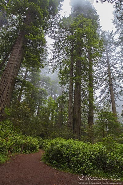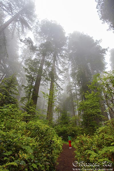 But of course one cannot go to Redwood National Park without seeing the towering redwoods. We drove into the park and took the trail in Lady Bird Johnson Grove. As we walked, the sky darkened and the fog -- the most famous and nourishing Pacific Coast fog -- rolled in. We got a little wet, but it was a wonderful experience to see these giants of the plant kingdom.