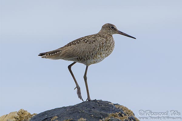 Unfortunately for us, it had been sunny and balmy for some time, but on this day it became cloudy and sometime rainy. The day before we pushed on to Eureka, which is just a short drive away from Redwood National Park, so we spent most of our time there. We made our first stop inside the national park at the beach across the road from Freshwater Lagoon. It was overcast and the scenery pictures did not turn out too well, but it was a good place to see some seabirds. I saw cormorants, murres, terns and gulls, even a Rhinoceros Auklet (a new bird and a rather rare encounter for me), as well as this Willet. (Click on each image to see the high-resolution version)