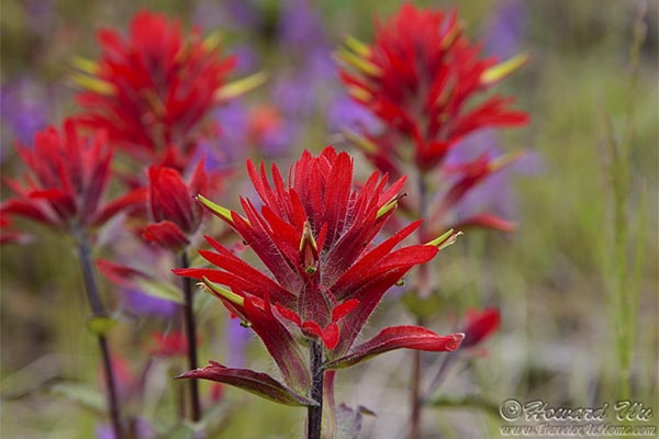 Nature does a fine job of reclaiming the ash-covered slopes. Many flowers were in bloom on this day, such as these Indian Paintbrushes.