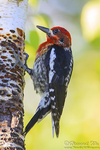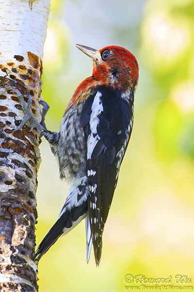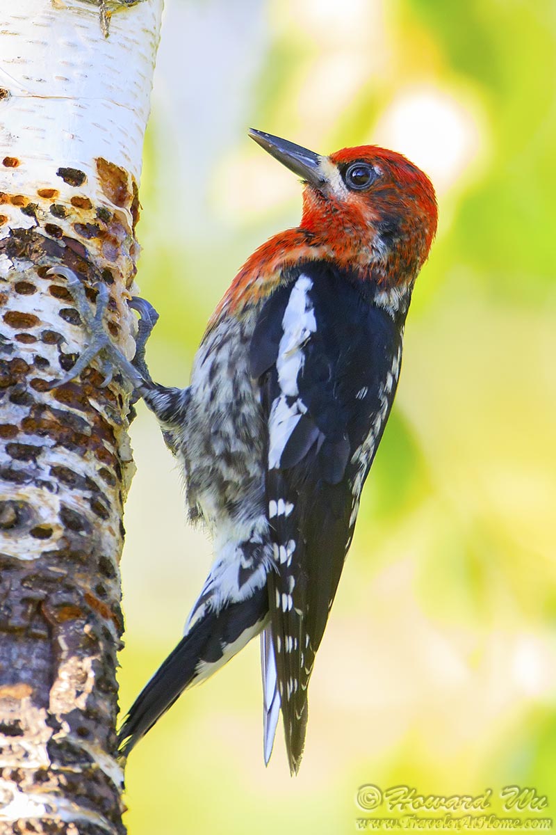 But as far as bird photography, the highlight actually did not arrive until we checked into the lodge. There, I saw my first Red-breasted Sapsucker and saw it drilling evenly spaced holes on the bark of an aspen tree to get at the sweet sap.