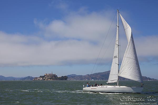 I never quite understood Americans' infatuation with Alcatraz. Ok, I understand the reasons -- the prison for high-profile criminals on an island in the center of a bay next to a famous city, and the story is undoubtedly magnified by Hollywood's dramatization. But I don't understand the degree to which they are so obsessed with it. But I took some obligatory pictures of it anyhow ...