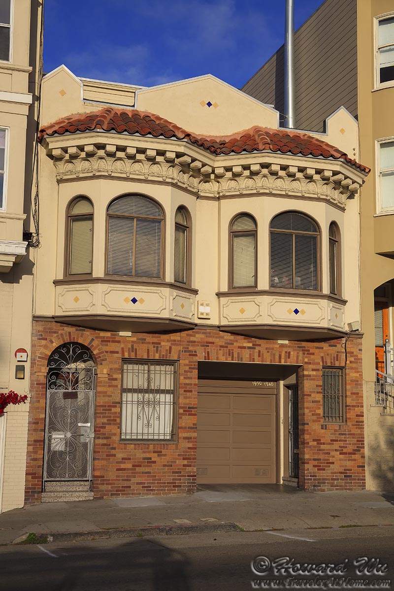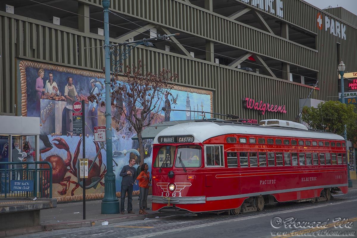 One of San Francisco's many street cars, each of which is unique in color and design.