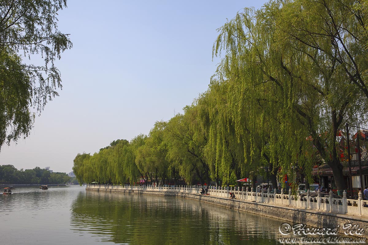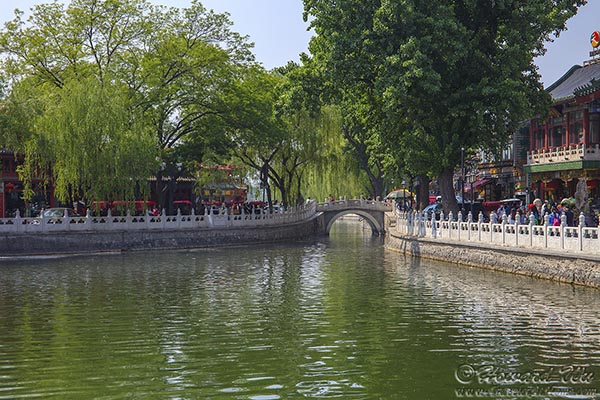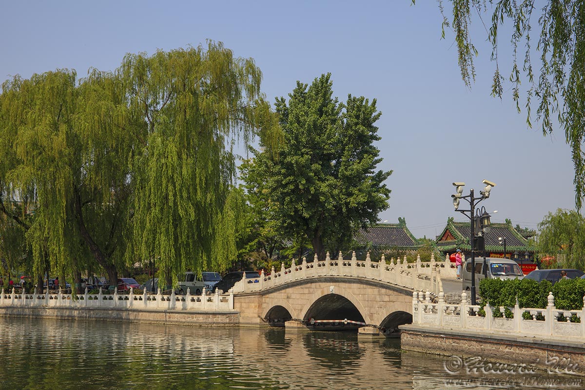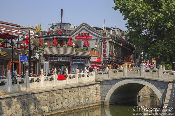 In the afternoon we took a walk around Shi Cha Hai (什刹海). This is one of my favorite places in Beijing, dating back to my college days. And one of the most photogenic places around here is the Yin Ding Qiao (银锭桥), or the Bridge of Silver Ingot. Since it is guarding the narrow bottleneck between Qian Hai (Front Sea) and Hou Hai (Rear Sea) and because of its dramatic curved structure, it is more famous than its big brother, Jin Ding Qiao (金锭桥) or the Bridge of Gold Ingot.