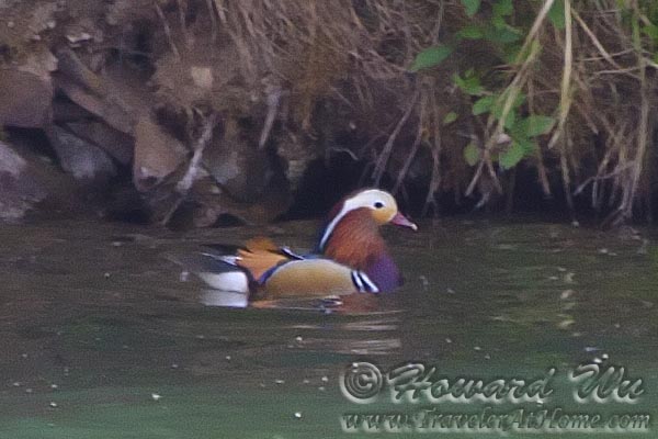 As far as bird photography was concerned, my results were poor -- mainly because I went to the Great Wall in the middle of the day when birds were scarce, and also because I took bird pictures in the city of Beijing when I first arrived, so mostly I saw familiar birds (the Temple of Heaven Park is a good birding destination). When I was at the Lakeside Great Wall, suddenly a bird dropped down to the lake. This was my last new bird (No. 21) of the trip -- fittingly, it was a Mandarin Duck (鸳鸯).