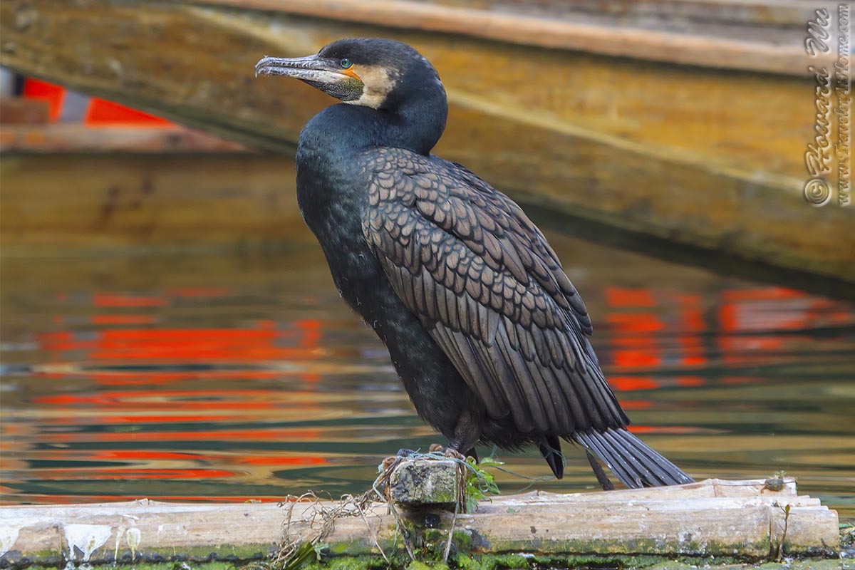 In the river, there were several Great Cormorants (普通鸕鶿) resting on a raft. They are most certainly domesticated to catch fish.