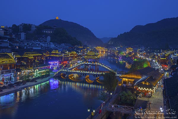 However, Fenghuang has also become very touristy, although it hasn't lost all its charm. At night, all the nights come on and the whole town glows.