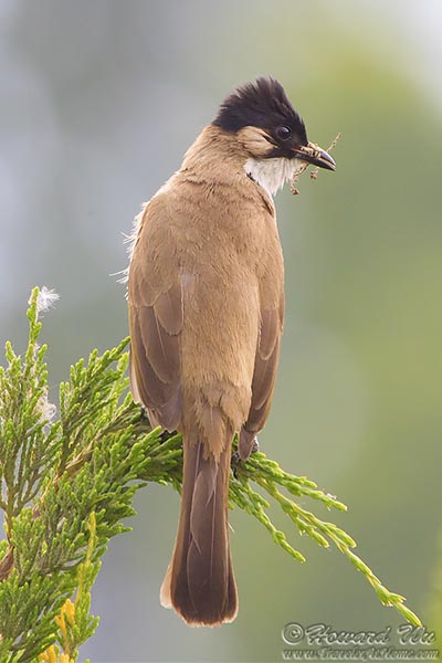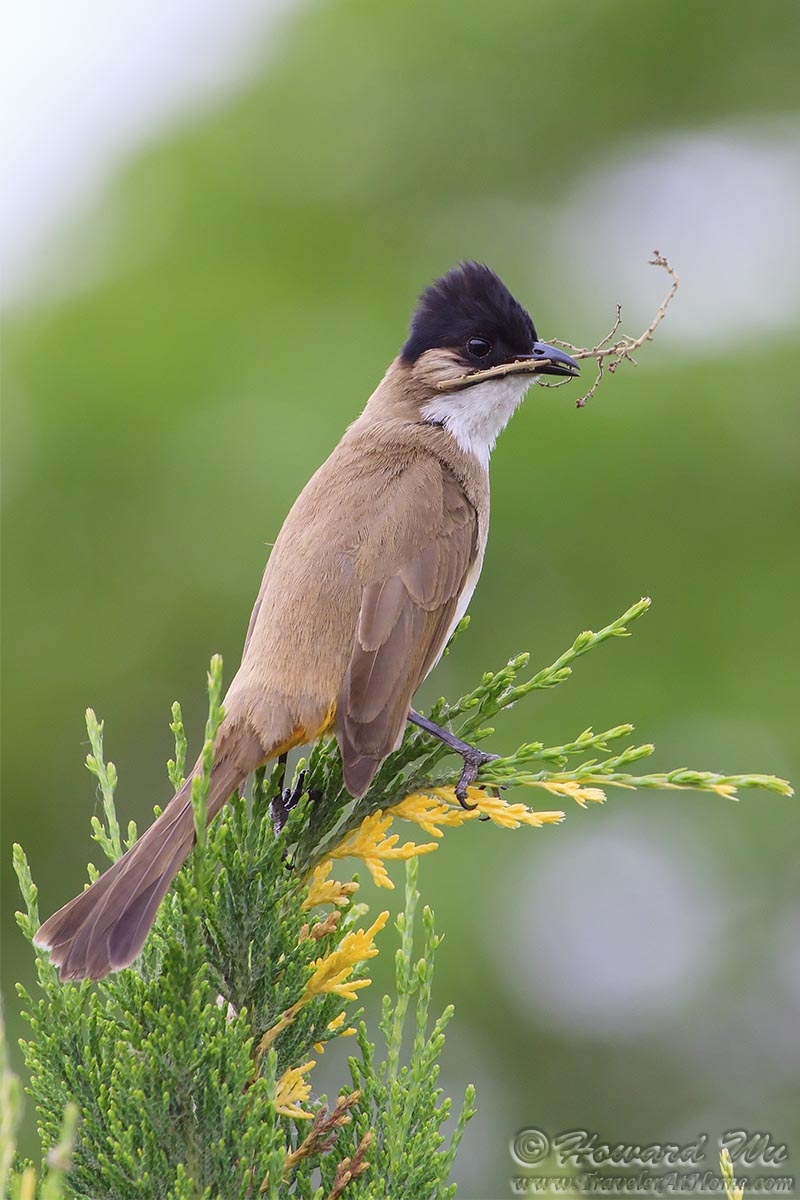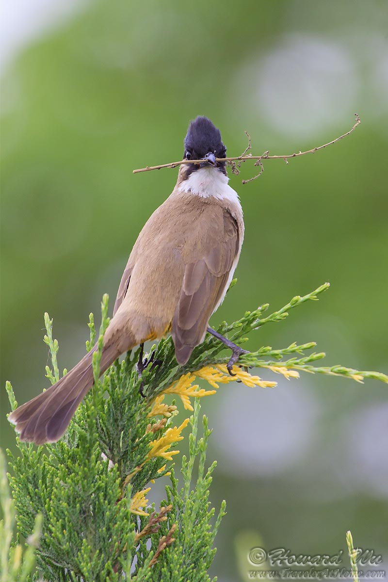 While going from one pit to another, I noiced that there were a few birds busily flying around, with nesting material in their beaks. This is no longer a new bird for me -- they are Brown-breasted Bulbul (黄臀鹎) which I had seen it in Fenghuang. Nevertheless, they offered photo opportunities I could not refuse.