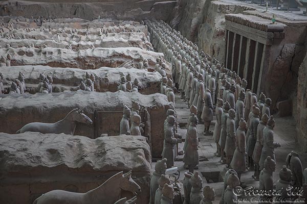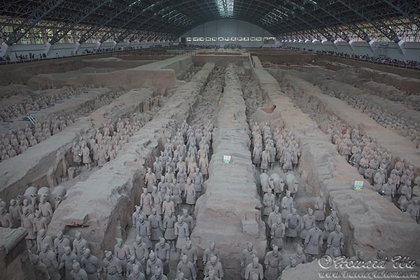 The size of the excavation pit is so immense it defies the senses. It is hard to imagine this is only one of the many pits (most of them unexcavated at this point). The Emperor Qin Shi Huang really did build an army for the afterlife. The following shot is of No. 1 Pit, the largest excavated so far.