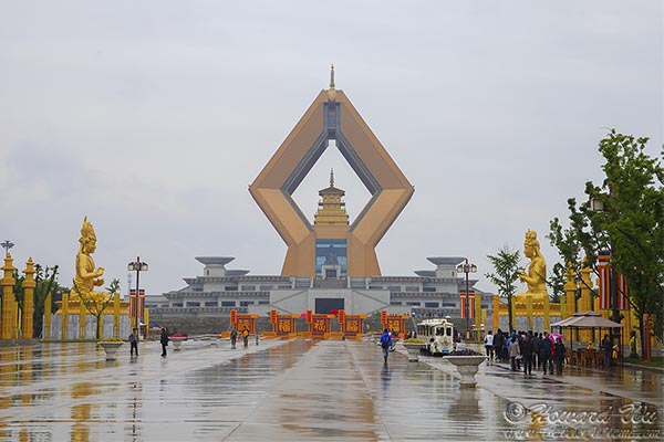 We had planned to stay in Xi'an for almost 3 days, allowing plenty of time to go places, and we planned to go to Hua Shan. Unfortunately the weather turned cold, windy and rainy the next day. We had to change plan and go to Famen Temple instead. The new complex was completed just in 2009, which is said to resemble a pair of opened praying hands.