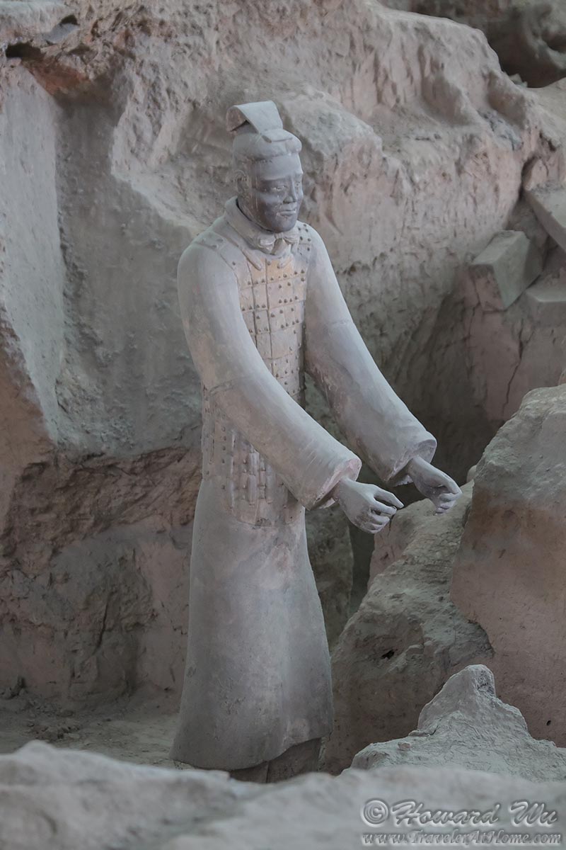 The entire pit is fenced off, but some terracotta warriors are closer to the tourists, allowing for close-up pictures.
