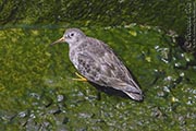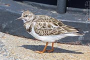 There were many Ruddy Turnstones on the island. They were unafraid and in fact picking up food debris left by tourists in the parking lot. Tame or not, they are beautiful birds. I walked around the island and saw many birds -- Long-tailed Ducks, Red-breasted Mergansers, gulls of many kinds, cormorants, and an American Oystercatcher (none of these was shown here as they were distant and the photos were not good). A couple of Purple Sandpipers were probing in the rock pilings around the island and allowed some good picture taking.
