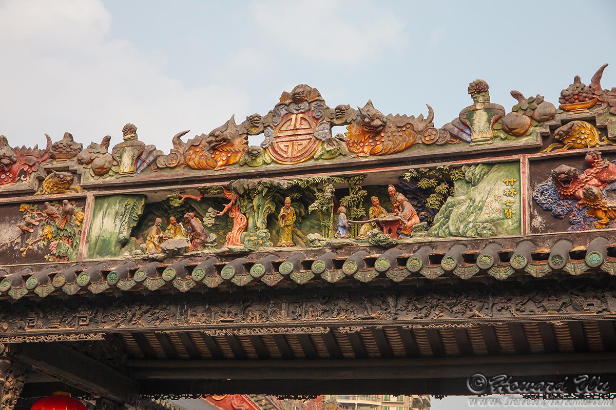 Our last stop was at Chen Clan Ancestral Hall (陈家祠). This is a 19th century household with many intricate plaster, brick and wooden carvings. These carvings are certainly impressive enough, but my attitude toward this kind of art is rather ambivalent: on one hand they are really beautiful, on the other hand, when, as a people, we dedicate so much effort to these intricate yet trivial art, we slow down or stop innovation of more profound importance.