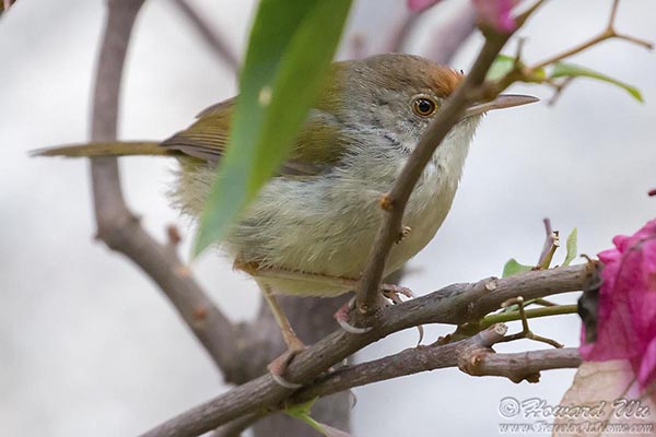 Just below this statue, I got another new bird almost immediately -- a Common Tailorbird (长尾缝叶莺). This was a very active bird, darting around in the underbrush, very hard to get a glimpse of. But I managed a few decent shots.