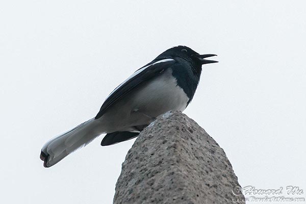 Almost as soon as I reached the statue, I saw my first new bird of the trip -- an Oriental Magpie-robin (鵲鴝). The sky was gray at the time and the bird was backlit, so the picture did not turn out very well, but hey, a new bird is a new bird.