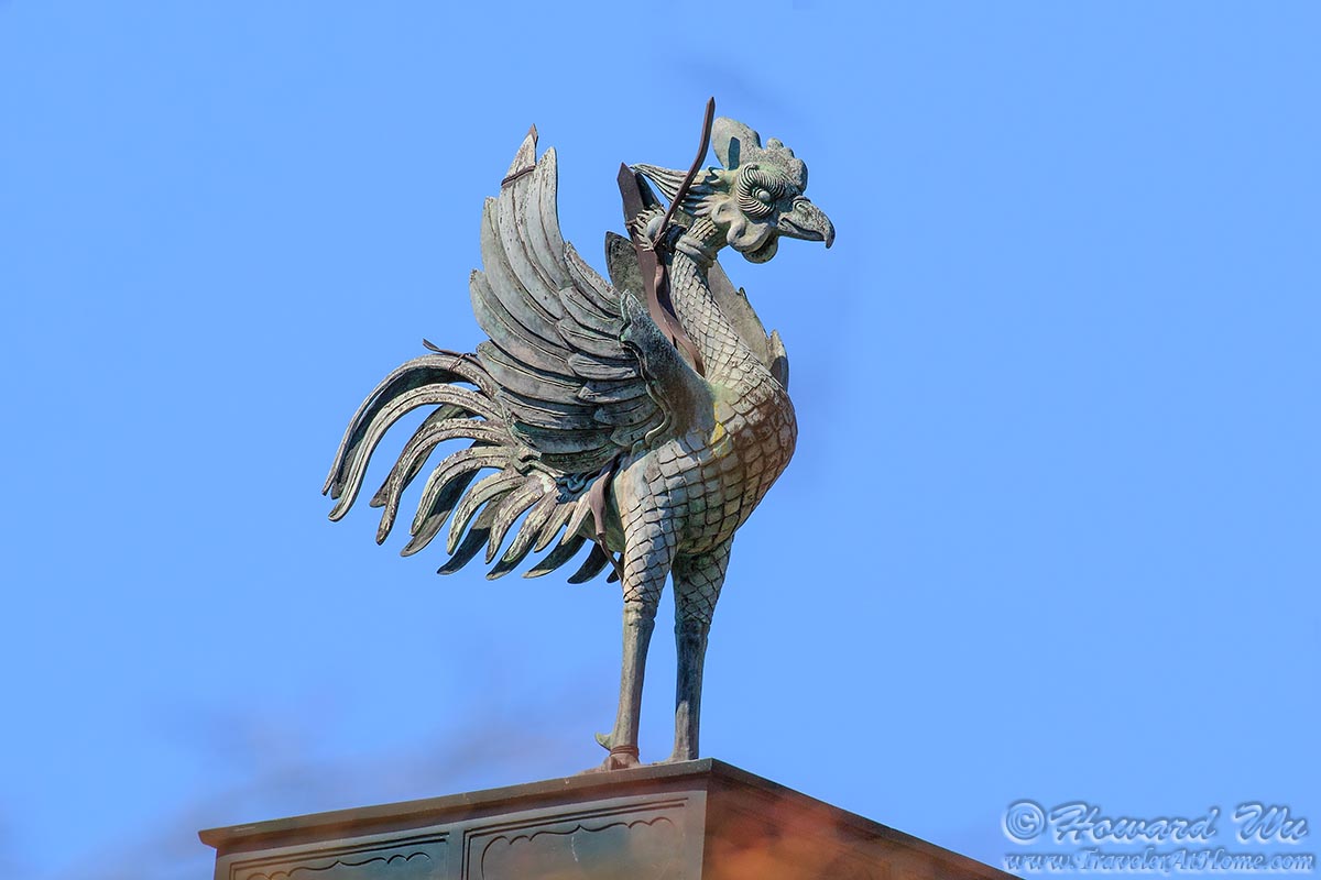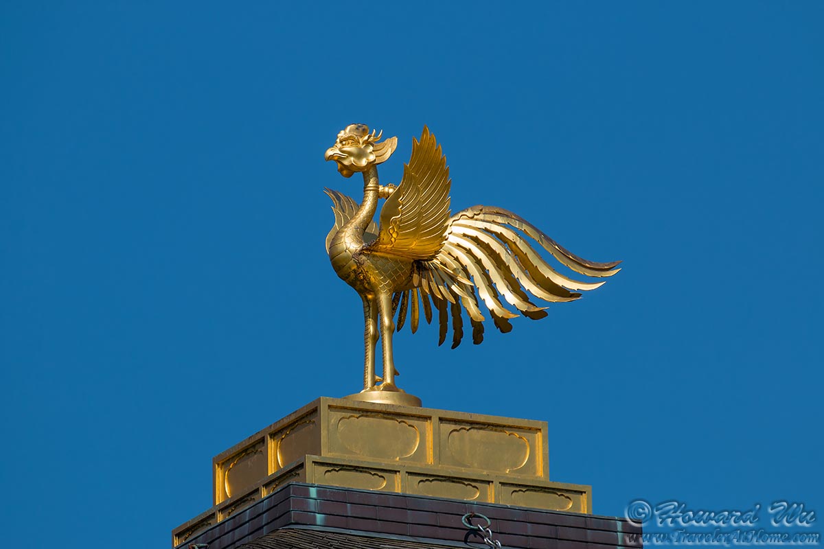 My first bird of this morning -- so to speak -- was the golden phoenix on the rooftop of the temple, glistening in all its glory.