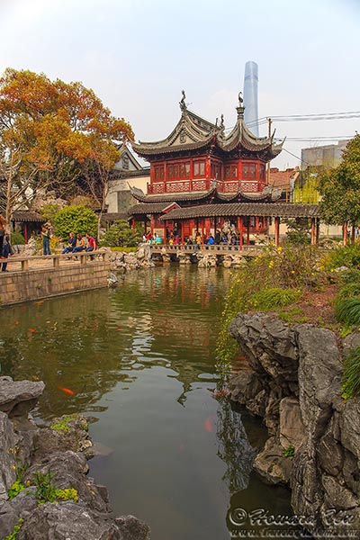 Yu Garden (豫园), with the still-under-construction Shanghai Tower in the background
