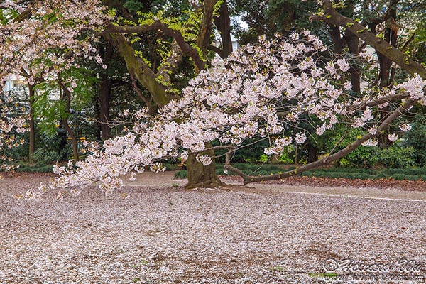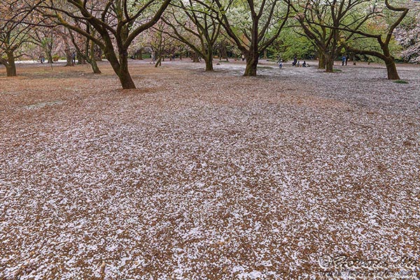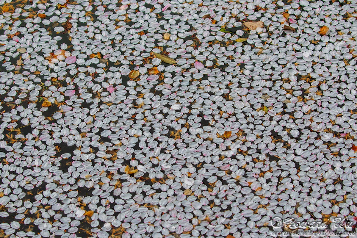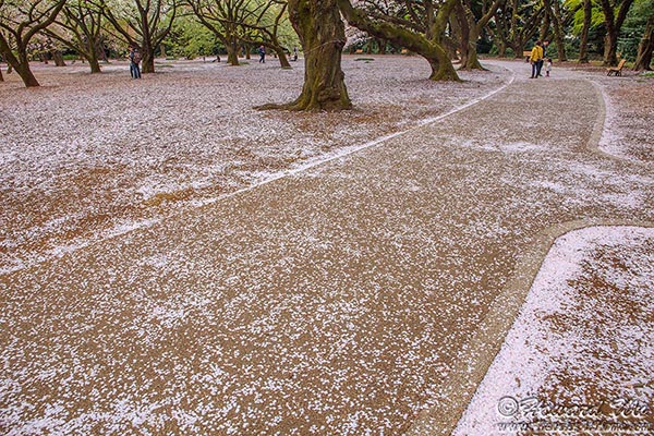 The fallen sakura petals which symbolizes the ephemeralness of the cherry blossom that is etched in the Japanese national psyche -- have you heard of the sad tune of the traditional Japanese song Sakura Sakura? Check it out.