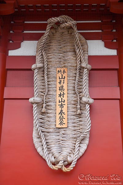 The dreary weather did not make good pictures (the blank and gray sky ruined every picture that had any part of it), so I turned my attention to the interior and details at Senso-ji. This gigantic straw sandal caught my attention.