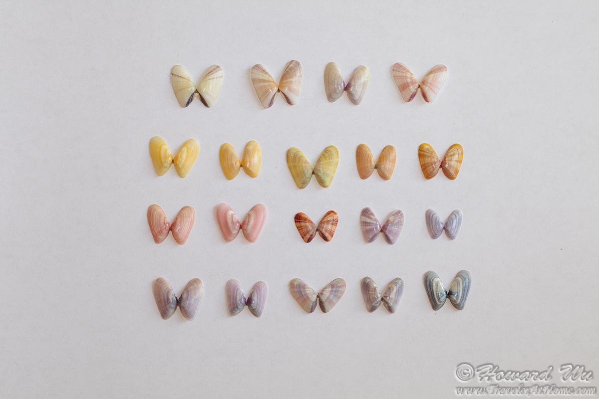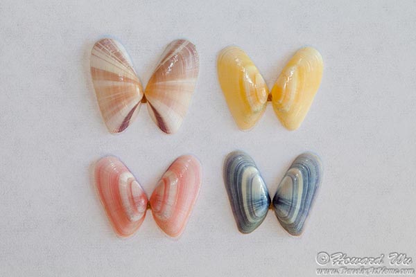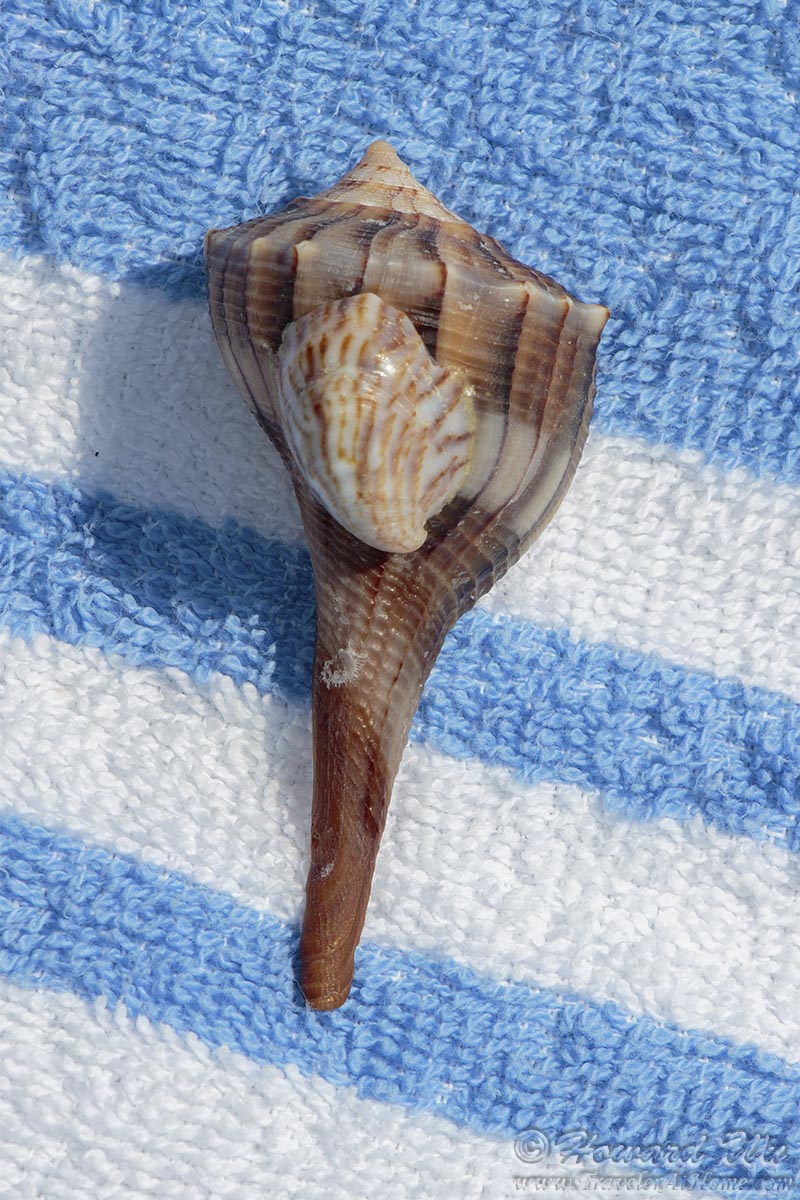 Sanibel and Captiva Islands are known for their abundance and variety of sea shells. We spent a couple of hours picking up some, mostly on Bowman's Beach on Sanibel, but also some in Naples close to our hotel, La Playa Beach Resort. All of these pictures were taken later at home with a macro lens and flash, except the last one which is the shell of a whelk with another live shell on it that we found on Bowman's Beach. Because the small sea shell on it was still alive, we put it back to the water after taking a few pictures of it.