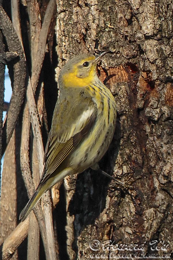 Unlike last New Year's Day, this New Year's Day I decided to take it easy and just wander around near where I live. My wandering is, of course, still bird-oriented. A pair of warblers -- very rare at this time of the year -- had been reported in Baltimore, and I had been itching to see them (espeically the Cape May, which would be a new life bird for me). I wasted no time and arrived at Essex Park & Ride where the birds had been reported just after 9AM. I waited until 10AM before the Cape May showed up, then 20 minutes later the Nashville showed up as well. I did not get very close in order not to spook the birds, so the pictures were not great. But I surely can't complain about starting the new year with a new bird! (Click on each image to see the high-resolution version)