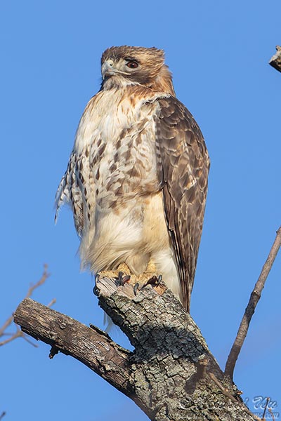 To top it off, I then saw a magnificent Red-tailed Hawk perching on a tree, apparently after just having a meal (note the blood on its talons).