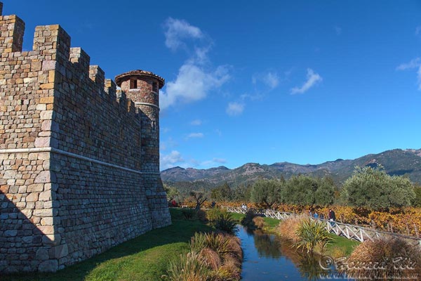 The most spectacular establishment is the faux-Italian castle at Castello di Amorasa. Being at a high vantage point at the northern end of the valley, it also offers good views of Napa Valley itself, and the white buildings of Sterling Vineyards across the valley.