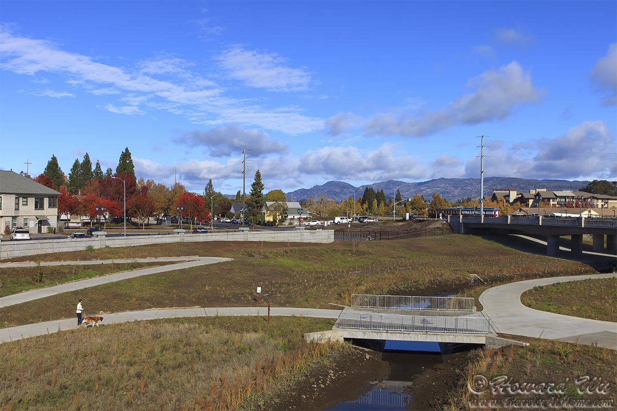 Our walk led us across the Napa River and railroad where the Napa Valley Wine Train was parked.