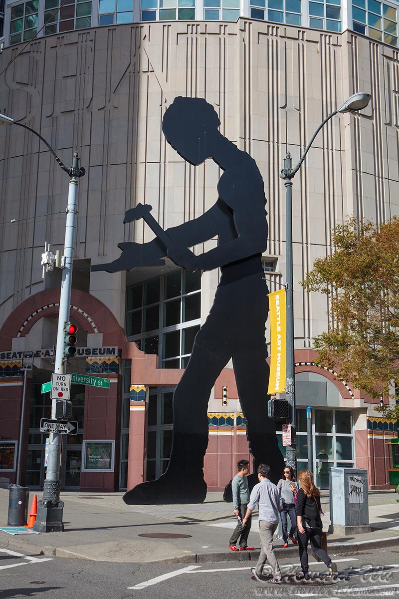 The Hammering Man outside Seattle Art Museum, fun to watch him slowly hammering away.