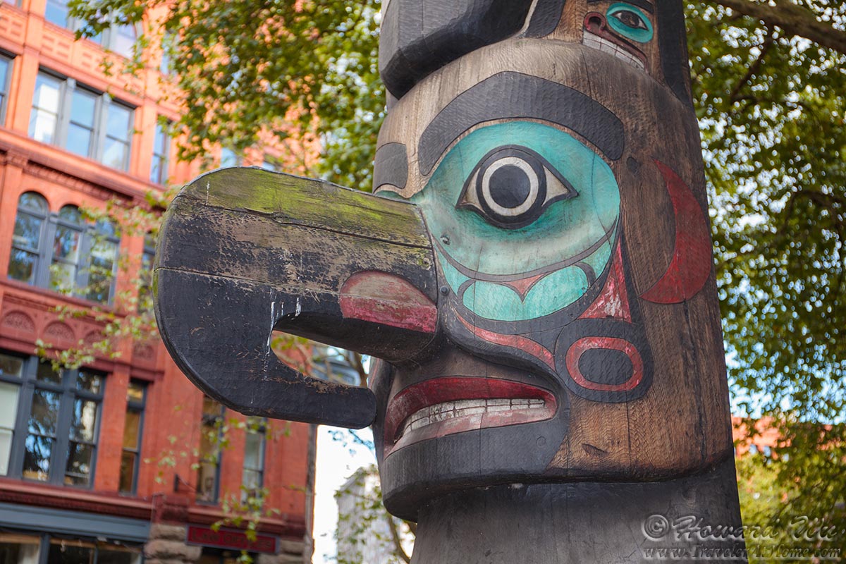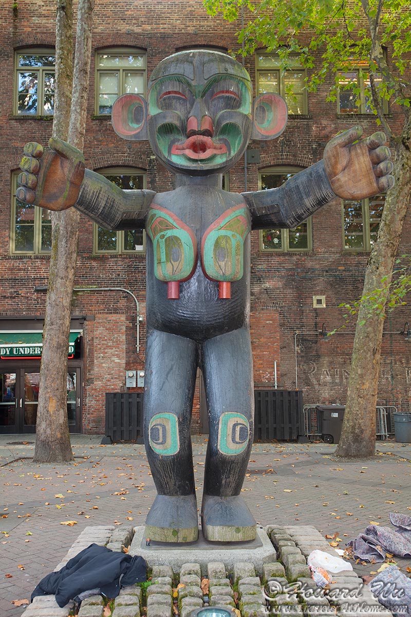 There are erected a few totem poles and totem pole like statues in Pioneer Square, reminding us of the Northwest's Native American heritage.