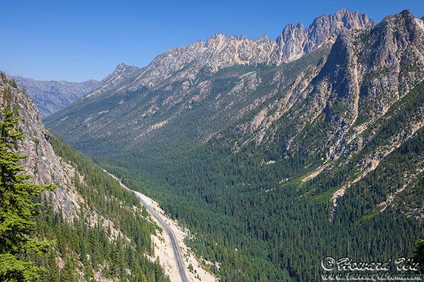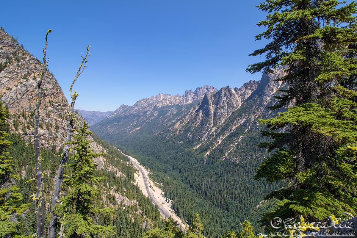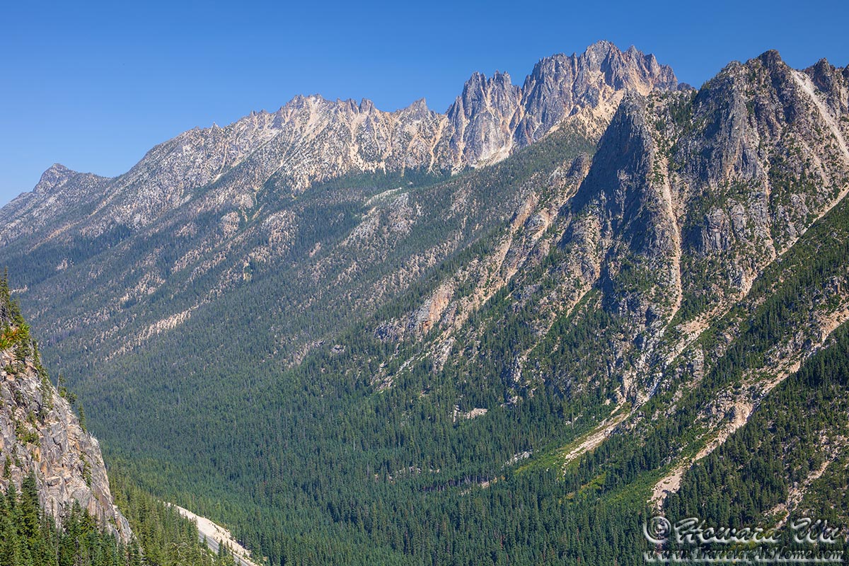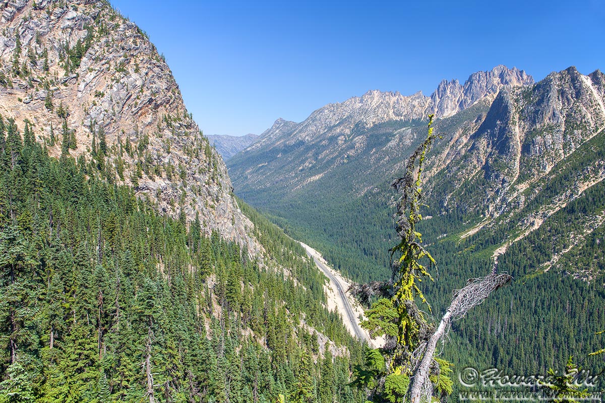 Indeed, as I continued to drive the sky became more and more clear. At Washington Pass there was almost no trace of smoke, except a little haziness in the distant air. I walked to the overlook, the view was panoramic and truly breathtaking. Although there was no glacier-covered peaks here, the jagged mountains are imposing and spectacular. There were even a few groups having picnic there. At that point all seemed very peaceful.