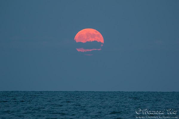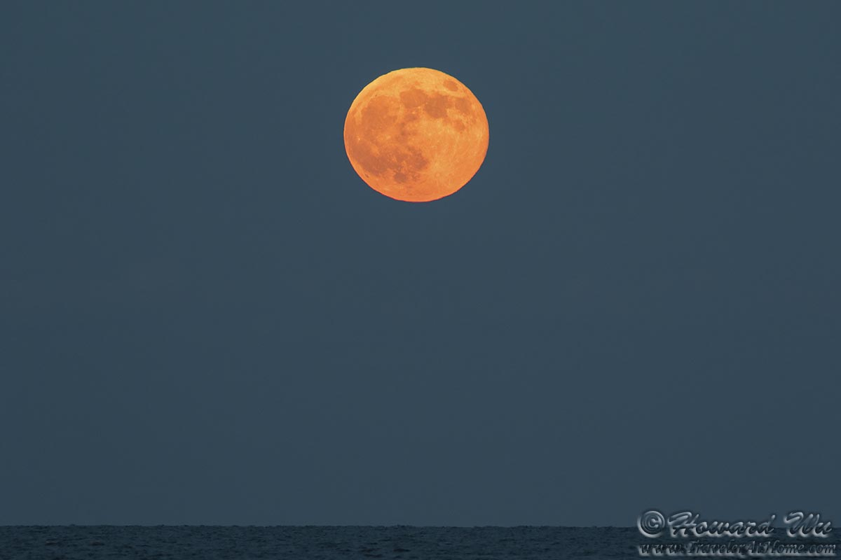 But my day was not to be over yet. The full moon -- in fact a also nearly a super moon (moon at its closest orbit to the earth) -- rose over the Gulf. Thus, just as my trip to Seattle ended with a red sun, my visit to Houston ended with an orange moon.