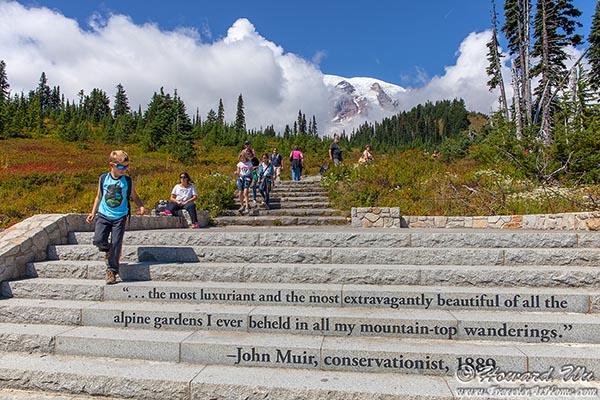 As most tourists, we reached the Paradise Visitor Center. We took (part) of the Skyline Trail, which begins at what I call the "John Muir Staircase".