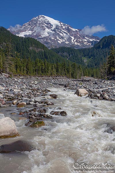 As we entered the park, the tumbling Nisqually River greeted us, with Mt. Rainier in the background